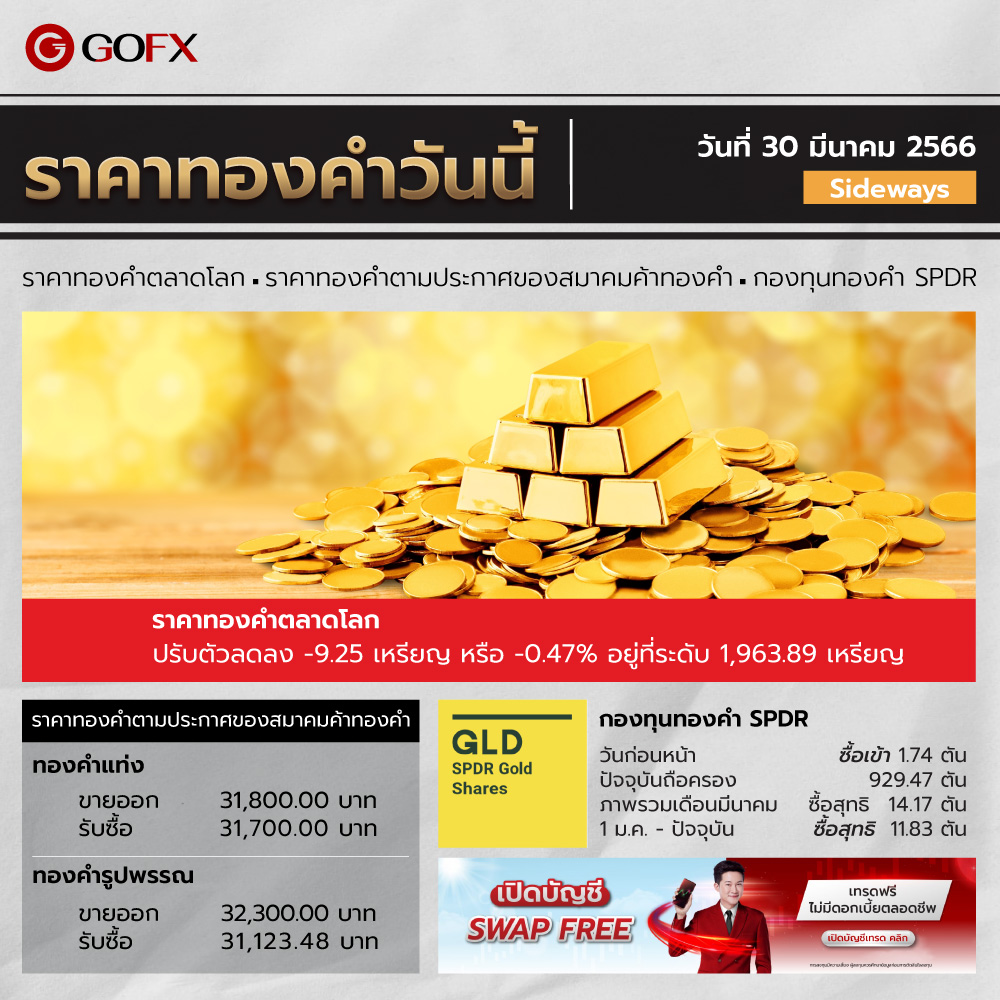 GOFX » ข่าวและบทวิเคราะห์ » ราคาทองคำวันนี้ » รายงานราคาทองคำประจำวันที่ 30 มีนาคม 2566
