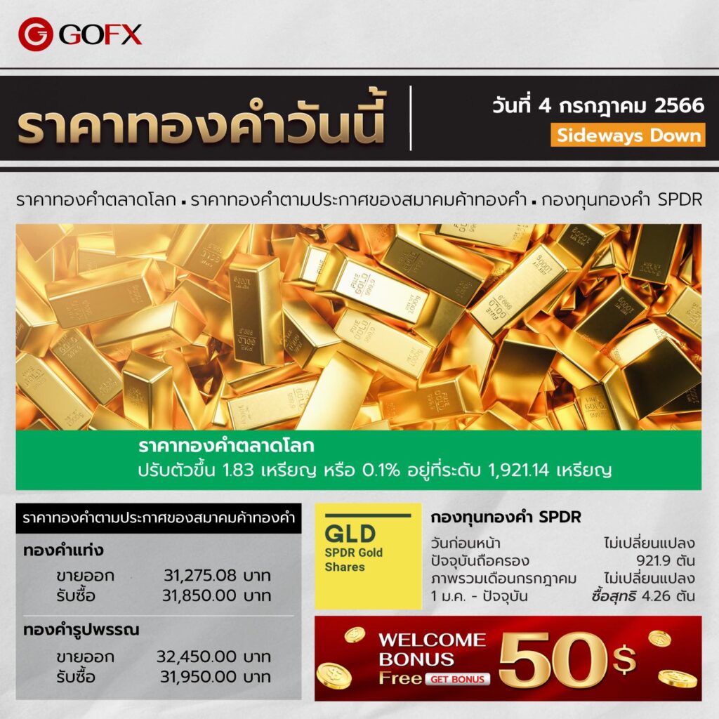 GOFX » ข่าวและบทวิเคราะห์ » ราคาทองคำวันนี้ » รายงานราคาทองคำประจำวันที่ 4 กรกฎาคม 2566